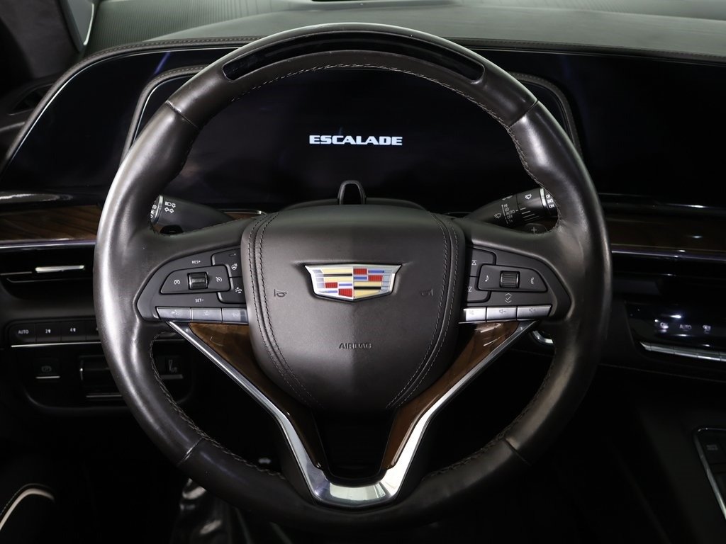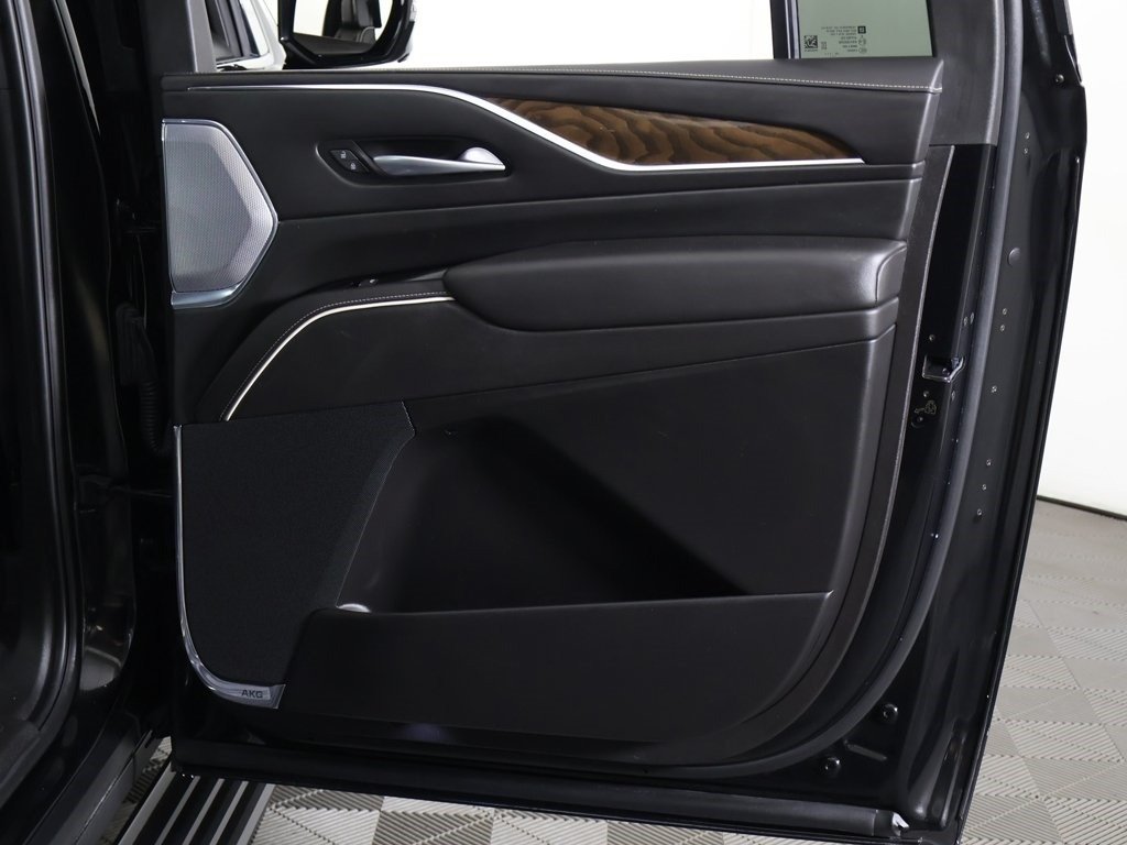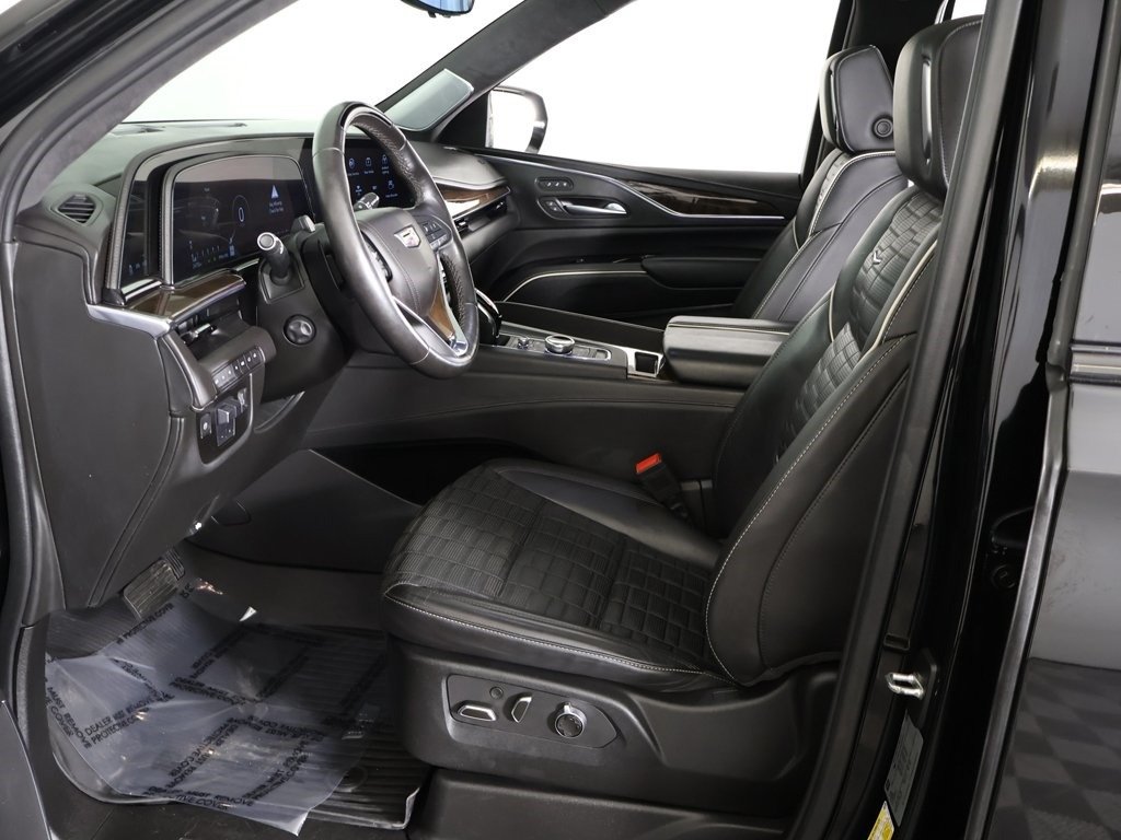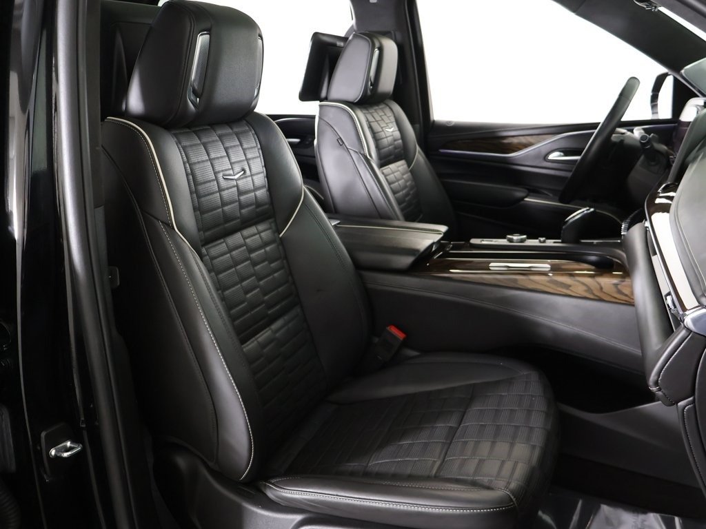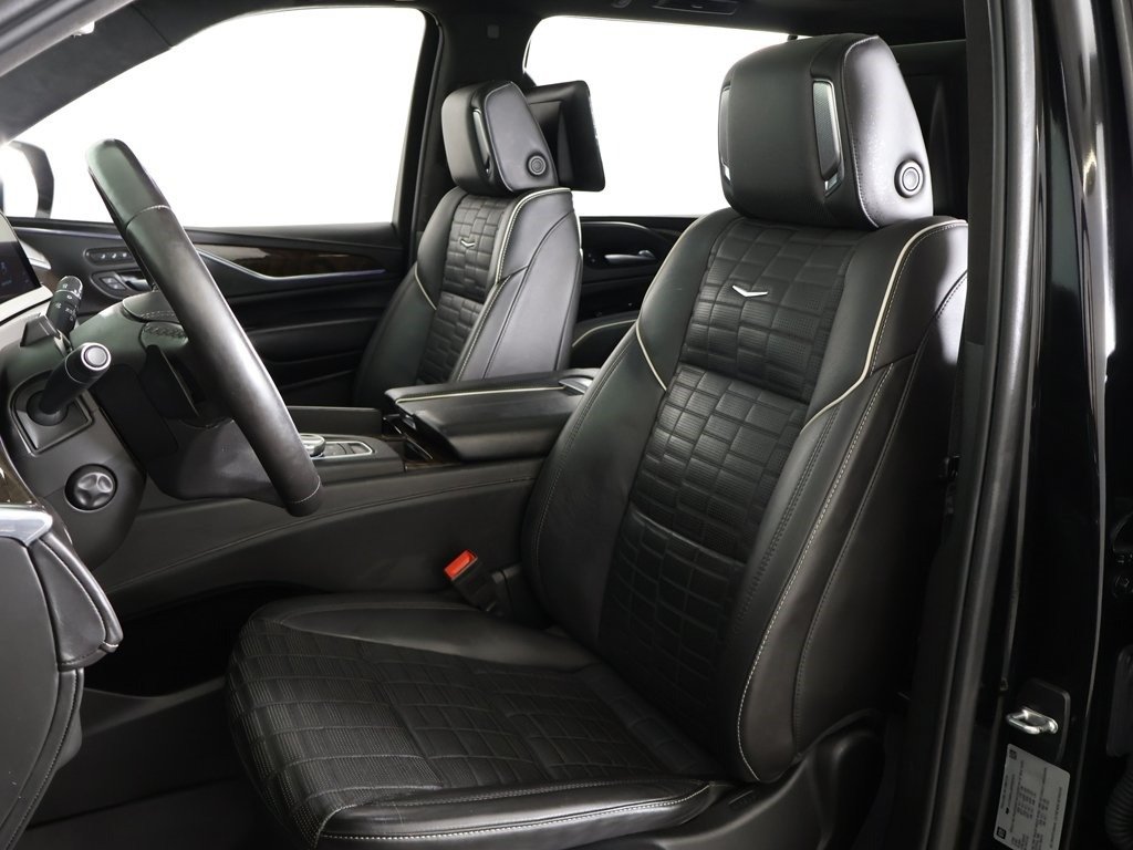 Keyless start, AWD, 2-Speed Active Transfer Case, 3rd row seats: split-bench, 4-Way Power Driver Lumbar Seat Adjuster, 8-Way Power Driver Seat Adjuster, 8-Way Power Front Passenger Seat Adjuster, Adaptive Cruise Control, Air Ride Adaptive Suspension, AKG Studio Reference 36-Speaker Audio System, Auto High-beam Headlights, Automatic Seat Belt Tightening, Automatic temperature control, Body-Color Door Handles, Delay-off headlights, Door Lock & Latch Shields, Electronic Limited-Slip Differential, Enhanced Automatic Emergency Braking, Enhanced Automatic Parking Assist, Extra Capacity Cooling System, Floor Console w/Covered Storage, Front Auxiliary 12-volt Power Outlet, Front dual zone A/C, Fully automatic headlights, Glass Breakage Sensor, Gloss Black Escalade Nameplate (LPO), Heated & Ventilated Driver & Front Passenger Seats, Heated rear seats, Heated steering wheel, Heavy-Duty Trailering Package, Hitch Guidance w/Hitch View, Illuminating Front & Rear Sill Plates, Integrated Trailer Brake Controller, Memory seat, Monochrome Cadillac Emblems (LPO), Navigation System, Onyx Package (LPO), Platinum Interior Trim, Power Liftgate, Power Lumbar Massage Driver Seat, Power Lumbar Massage Front Passenger Seat, Power Panoramic Tilt-Sliding Sunroof, Power-Retractable Assist Steps, Preferred Equipment Group 1SH, Rear air conditioning, Rear Camera Mirror, Rear Camera Mirror Washer, Rear Cross Traffic Alert, Rear Seat Entertainment System, Reconfigurable Full-Color Head-Up Display, Reverse Automatic Braking, Running Board Assist Steps, Smart Trailer Integration Indicator, Soft Closing Front & Rear Doors, Theft-Deterrent Alarm System, Touring Package, Trailer Side Blind Zone Alert, Trailer Tire Pressure Monitoring System, Trailering Assist Guidelines, Vehicle Inclination Sensor, Vehicle Interior Movement Sensor, Wheels: 22" 12-Spoke Gloss Black Alloy (LPO), Wired Auxiliary Trailer Camera (LPO), Wireless Apple CarPlay/Wireless Android Auto, 16.9" Diagonal OLED Infotainment Screen, 2-Presets Memory For Driver Seat Adjuster, 3 Years of OnStar & Connected Services Plan, 3.23 Axle Ratio, 4-Way Power Front Passenger Lumbar Seat Adjuster, 4-Wheel Disc Brakes, A/V remote, ABS brakes, Adaptive suspension, Air Conditioning, All-Weather Floor Liner Package (LPO), All-Weather Integrated Cargo Liner (LPO), Alloy wheels, AM/FM radio: SiriusXM with 360L, Apple CarPlay/Android Auto, Audio memory, Auto tilt-away steering wheel, Auto-dimming door mirrors, Brake assist, Bumpers: body-color, Compass, Door auto-latch, Driver door bin, Driver vanity mirror, Dual front impact airbags, Dual front side impact airbags, Electronic Stability Control, Emergency communication system: OnStar and Cadillac connected services capable, Exterior Parking Camera Rear, Floor Liner Package (LPO), Four wheel independent suspension, Front anti-roll bar, Front Bucket Seats, Front Center Armrest w/Storage, Front License Plate Bracket, Front reading lights, Full Semi-Aniline Leather Seat Trim, Garage door transmitter, Genuine wood console insert, Genuine wood dashboard insert, Genuine wood door panel insert, HD Radio, Headphones, Heads-Up Display, Heated door mirrors, Heated Driver & Front Passenger Seats, Heated front seats, Illuminated entry, Leather steering wheel, Low tire pressure warning, Magnetic Ride Control Suspension, Occupant sensing airbag, Outside temperature display, Overhead airbag, Overhead console, Panic alarm, Passenger door bin, Passenger vanity mirror, Power door mirrors, Power driver seat, Power passenger seat, Power steering, Power windows, Radio data system, Radio: AM/FM w/Navigation, Rain sensing wipers, Rear anti-roll bar, Rear audio controls, Rear reading ligh