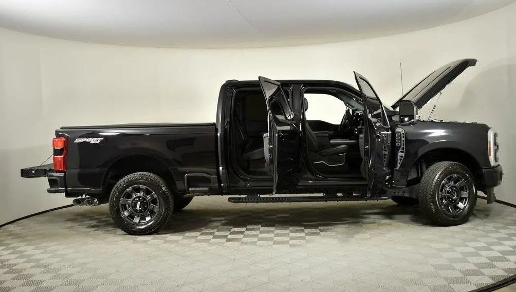 2024 Ford F-250SD LariatPower Stroke Engine 7.3 V8 F SOHC 16V GASOLINE 10-Speed Automatic 4WD 5th Wheel/Gooseneck Hitch Prep Package, F-250 >10K GVWR Package, FX4 Off-Road Package (Hill Descent Control, Off-Road Specifically Tuned Shock Absorbers, and Unique FX4 Off-Road Box Decal), Lariat Ultimate Package (SiriusXM Radio w/360L, SYNC 4 w/Enhanced Voice Recognition, Tailgate Step & Handle, and Upfitter Switches (6)), Order Code 608A, Sport Appearance Package (Black Tow Hooks, Body-Color Front & Rear Bumpers, Chrome Exhaust Tip, Dark Painted Grille, Platform Running Boards, Sport 4x4 Box Side Decal, and Wheels: 20'' Dark Carbonized Gray Painted Aluminum), 4WD, 190 Amp Alternator, 4-Wheel Disc Brakes, 8 Speakers, ABS brakes, Adjustable pedals, Air Conditioning, Alloy wheels, AM/FM radio: SiriusXM with 360L, Auto High-beam Headlights, Auto tilt-away steering wheel, Auto-dimming Rear-View mirror, Automatic High Beam, Automatic temperature control, BLIS w/Cross-Traffic Alert, Brake assist, Bumpers: chrome, Compass, Delay-off headlights, Driver door bin, Driver vanity mirror, Dual 68 AH/65 AGM Batteries, Dual front impact airbags, Dual front side impact airbags, Electronic Stability Control, Emergency communication system: SYNC 4 911 Assist, Exterior Parking Camera Rear, Flow-Through Console, Front anti-roll bar, Front Bucket Seats, Front Center Armrest, Front dual zone A/C, Front fog lights, Front Leather-Trimmed 40/Console/40 Seats, Front reading lights, Fully automatic headlights, Garage door transmitter, Heated door mirrors, Heated front seats, Heated rear seats, Heated steering wheel, Illuminated entry, Lane-Keeping System, Leather steering wheel, Low tire pressure warning, Memory seat, Navigation system: Connected Navigation (includes complimentary 1-year trial), Outside temperature display, Overhead airbag, Overhead console, Panic alarm, Passenger door bin, Passenger vanity mirror, Pedal memory, Post-Collision Braking, Power door mirrors, Power driver seat, Power passenger seat, Power steering, Power windows, Pre-Collision Assist, Radio: B&O Sound System by Bang & Olufsen, Rain sensing wipers, Rear reading lights, Rear seat center armrest, Rear step bumper, Rear window defroster, Remote keyless entry, Security system, Speed control, Split folding rear seat, Steering wheel memory, Steering wheel mounted audio controls, Tachometer, Telescoping steering wheel, Tilt steering wheel, Traction control, Trip computer